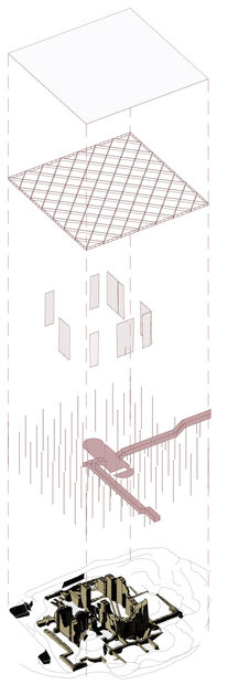 To protect the thermal baths from the effects of weather and prevent further decay, the ruins will be covered by a glass roof. This roof is supported by columns that mirror the dimensions of the ancient baths. The construction, consisting of steel and glass, imparts a light and transparent appearance to the structure, creating an intriguing contrast with the ancient ruins. To enhance the historical ambiance, transparent textile curtains will be suspended from the roof structure. These curtains enclose the space, establish harmonious proportions, and provide visitors with a pleasant sensation in this historically significant environment.